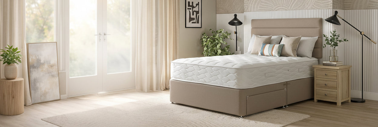 We offer memory foam, pocket sprung, and hybrid mattresses. Each provides different benefits depending on your sleep style and support needs. Visit our Mattress Guide for a detailed comparison.
