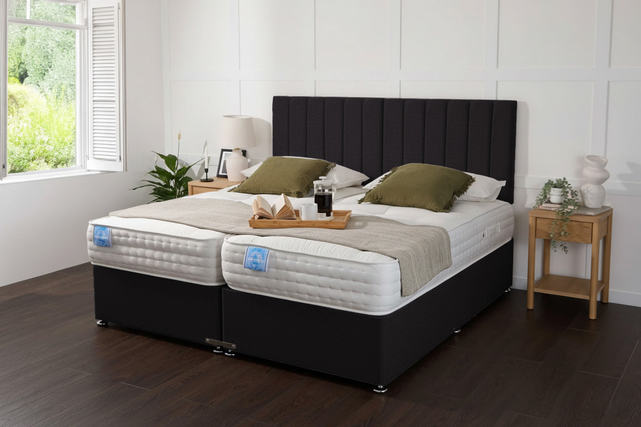 Introducing the Luxury Hotel Zip & Link 3000 Pocket Sprung Intelligent Memory Divan Bed Set, a refined fusion of comfort and British craftsmanship. This versatile bed set combines a Zip & Link Beds configuration with a robust 3000 Pocket Sprung system and an Intelligent Memory comfort layer, delivering adaptive support for undisturbed sleep. Available in multiple lengths and widths, it accommodates both traditional and contemporary bedrooms. Choose from 5' King Size in 6'3" or 6'6" lengths, or 6' Super King in 6'3" or 6'6" lengths, for a tailored profile that fits your space Divan Bed Set.