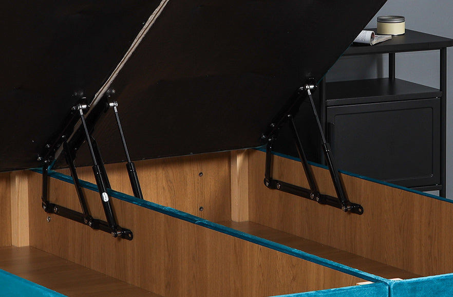 The half-lift system uses gas-assisted pistons to help raise part of the base smoothly. Inside, you will find a storage area suitable for extra bedding, pillows, or other personal belongings. The design helps make better use of space in smaller bedrooms or areas where storage is limited.